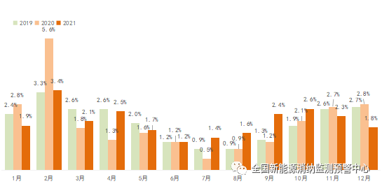 四季度,全國風(fēng)電發(fā)電量1831.8億千瓦時(shí),同比增長60.4%;光伏發(fā)電量764.6億千瓦時(shí),同比增長27.6%。全年風(fēng)電、光伏累計(jì)發(fā)電量9785億千瓦時(shí),同比增長35%,占全部發(fā)電量的比重達(dá)到11.7%,同比提升2個(gè)百分點(diǎn)。由于2020年底風(fēng)電、光伏發(fā)電集中并網(wǎng),2021年風(fēng)光發(fā)電量大幅提升,占全部發(fā)電量的比重有明顯增長。