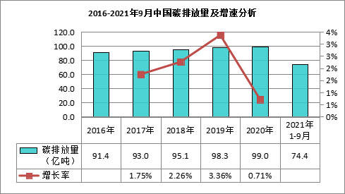 數(shù)據(jù)顯示,2020年我國碳排放總量約達(dá)99.0億噸,預(yù)計(jì)2021年我國碳排放總量將達(dá)101.09億噸。