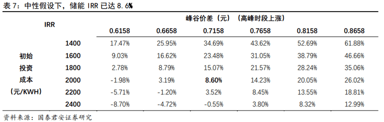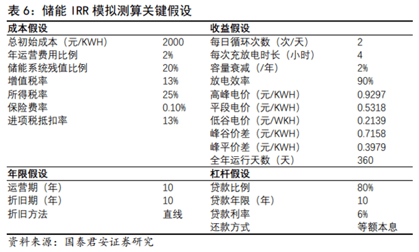 國內(nèi)用電側(cè)儲能經(jīng)濟(jì)性已現(xiàn)。我們以10MW/40MWh儲能系統(tǒng)為例進(jìn)行測算,在未考慮稅收優(yōu)惠時(shí),儲能IRR達(dá)8.60%,在考慮稅收優(yōu)惠的情況下IRR已達(dá)10.46%。