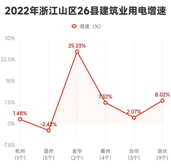 2022年,全省建筑業(yè)用電量為102.64億千瓦時(shí),同比下降1.75%。山區(qū)26縣全年建筑業(yè)用電量12.08億千瓦時(shí),同比增長3.82%,增速高于全省平均水平,實(shí)現(xiàn)了逆勢增長。這是浙江推進(jìn)山海協(xié)作,加快補(bǔ)齊山區(qū)縣域交通基礎(chǔ)設(shè)施、新型城鎮(zhèn)化建設(shè)短板,在電量上的正向體現(xiàn)。