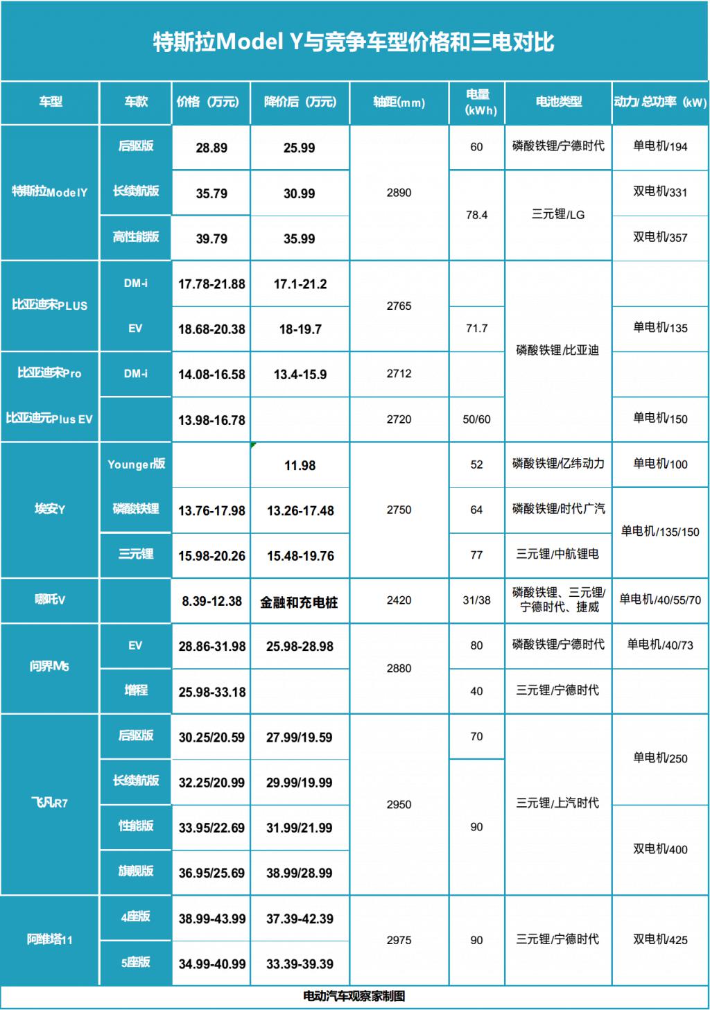 緊湊型的比亞迪宋 / 元新能源和埃安 Y 并不是中型的 ModelY 的直接競品。但當(dāng)新能源 SUV 市場的定價車型拿出新價格時,盡管中間存在 10 萬元的價差,還是必須 " 跟牌 ":