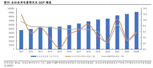 供給側(cè)改革“后遺癥”顯現(xiàn),階段性缺電頻發(fā)。2021 年以來的三年里,我國局部地區(qū)出現(xiàn)了電力供應(yīng)偏緊和短暫缺電的情況,先有 2021 年 8-9 月遼寧、吉林、江蘇、浙江、廣東等地相繼發(fā)布有序用電或限電通知,后有 2022 年夏季高溫天氣導(dǎo)致水電供應(yīng)持續(xù)受限,疊加居民用電負(fù)荷增加,各地為緩解用電高峰時(shí)段供電壓力再次發(fā)布限電通知,其中云南省電解鋁企業(yè)更是在 2022 年 9 月到 2023 年 2 月間三次收到限電通知。背后反映出來的是供給側(cè)改革后煤炭、火電的長(zhǎng)期投資萎縮導(dǎo)致的產(chǎn)能不足現(xiàn)象,與此同時(shí) 2015 年后我國全社會(huì)用電量增速回升,疊加 2022 年極端高溫導(dǎo)致的空調(diào)降溫用電需求激增,電力供需的矛盾逐漸顯現(xiàn)。展望“十四五”后三年,根據(jù)《新形勢(shì)下“十四五”后三年中國電力需求形勢(shì)研判》(2023年發(fā)表)分析,“十四五”后三年中國用電量仍有較大增長(zhǎng)空間,技術(shù)進(jìn)步、能源轉(zhuǎn)型、電力市場(chǎng)、氣候氣溫等因素對(duì)用電增長(zhǎng)影響將增強(qiáng),且最大負(fù)荷受產(chǎn)業(yè)結(jié)構(gòu)調(diào)整、空調(diào)與電采暖設(shè)備推廣、氣候氣溫等影響將更為突出,增速將高于用電增速,或進(jìn)一步增大電力保供壓力。