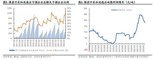 2023 年至今煤價(jià)中樞有所下移,煤炭行業(yè)虧損程度擴(kuò)大。據(jù)國家統(tǒng)計(jì)局,截至 2023 年6 月底,全國規(guī)模以上煤炭企業(yè) 4890 家,較去年同期增加 326 家,較 2022 年底增加 272 家。
