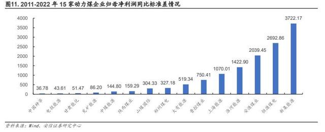 2)抵御周期方面,中國神華的煤電一體也一定程度熨平了煤、電行業(yè)周期波動(dòng),2011-2015年,受經(jīng)濟(jì)增長(zhǎng)動(dòng)能弱化、煤炭行業(yè)產(chǎn)能逐漸過剩影響,煤價(jià)整體波動(dòng)向下,同時(shí)期公司煤炭分部毛利率由 32%下降至 16%,而發(fā)電分部因成本改善毛利率由 24%上升至 36%。根據(jù)中國煤炭協(xié)會(huì)的統(tǒng)計(jì),2015 年煤炭行業(yè)虧損面已超過八成,而中國神華依舊實(shí)現(xiàn)歸母凈利潤161.44 億元,凈利率 13.14%,位列當(dāng)年動(dòng)力煤(中信)板塊公司榜首。2021-2022 年在火電企業(yè)大幅虧損的局面下,公司發(fā)電分部憑借穩(wěn)定煤源依舊實(shí)現(xiàn)毛利率 7.7%和 14.3%。在此基礎(chǔ)上,中國神華的煤炭業(yè)務(wù)與發(fā)電業(yè)務(wù)形成良好對(duì)沖,一定程度加強(qiáng)了業(yè)績(jī)的穩(wěn)定性。我們選取 Wind 中主業(yè)為動(dòng)力煤的 15 家上市公司作為樣本,計(jì)算其 2011-2022 年歸母凈利潤同比變動(dòng)標(biāo)準(zhǔn)差。結(jié)果顯示中國神華的同比變動(dòng)標(biāo)準(zhǔn)差最小,側(cè)面反映其盈利穩(wěn)定性。此外,據(jù)《煤電一體化深度融合發(fā)展的國神路徑研究》(2020)的分析,國家能源集團(tuán)旗下國神公司的煤電一體化項(xiàng)目除了通過傳統(tǒng)方式建設(shè)坑口電廠,減少煤炭流通環(huán)節(jié)實(shí)現(xiàn)內(nèi)部降本外,還通過水汽互補(bǔ)利用,燃料經(jīng)濟(jì)摻燒等創(chuàng)新方式降低生產(chǎn)成本,提高產(chǎn)業(yè)協(xié)同效應(yīng)。