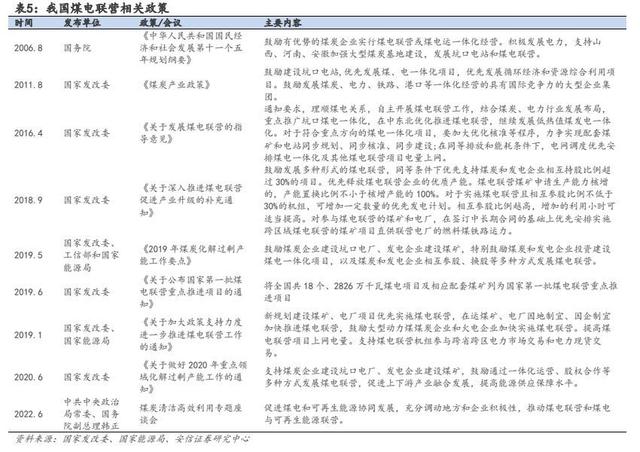 2016 年 4 月,國家發(fā)改委印發(fā)的《關(guān)于發(fā)展煤電聯(lián)營的指導(dǎo)意見》指出,煤電聯(lián)營是指煤炭和電力生產(chǎn)企業(yè)以資本為紐帶,通過資本融合、兼并重組、相互參股、戰(zhàn)略合作、長(zhǎng)期穩(wěn)定協(xié)議、資產(chǎn)聯(lián)營和一體化項(xiàng)目等方式,將煤炭、電力上下游產(chǎn)業(yè)有機(jī)融合的能源企業(yè)發(fā)展模式。此后,國家持續(xù)推進(jìn)煤電聯(lián)營的相關(guān)政策,貴州省政府更是在 2020 年發(fā)布《貴州省煤電聯(lián)營實(shí)施方案》,要求 2022 年省內(nèi)現(xiàn)役煤電企業(yè)煤電聯(lián)營實(shí)現(xiàn)全覆蓋,所有在建擬建燃煤發(fā)電項(xiàng)目實(shí)現(xiàn)煤電聯(lián)營,對(duì)規(guī)劃建設(shè)煤電項(xiàng)目和煤炭項(xiàng)目,按照國家要求,必須實(shí)行煤電聯(lián)營,重點(diǎn)推動(dòng)煤電一體化、大比例交叉持股等聯(lián)營方式。