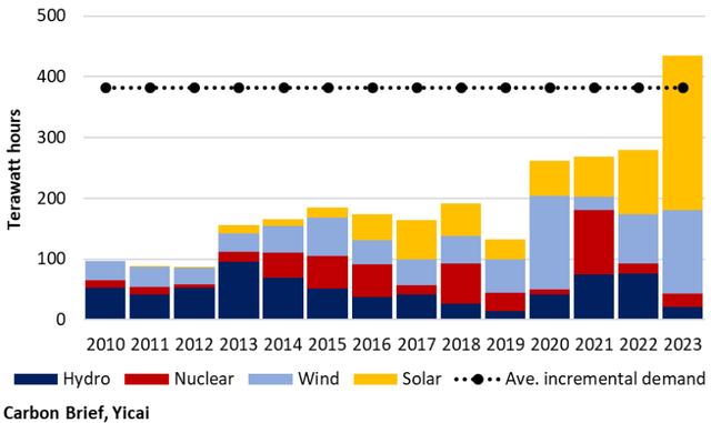 除了太陽能和風(fēng)能發(fā)電能力的大幅提升,碳簡報認(rèn)為,中國的發(fā)電能力將受益于水電的回升。熱浪和干旱在2022年8月和今年7月降低了水力發(fā)電量,但這些因素未來一段時間內(nèi)不會再困擾水電。有跡象表明,水庫水位已升至歷史平均水平,且目前的厄爾尼諾周期表明,直到明年2月份,降雨量都將高于平均水平。此外,2022年初至2023年9月,水電裝機容量增加了7%,這將進一步提高這種綠色能源對于滿足中國能源需求的貢獻。