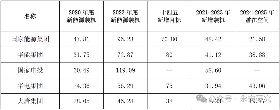 表1、電力企業(yè)“十四五”新能源裝機(jī)目標(biāo)(GW)