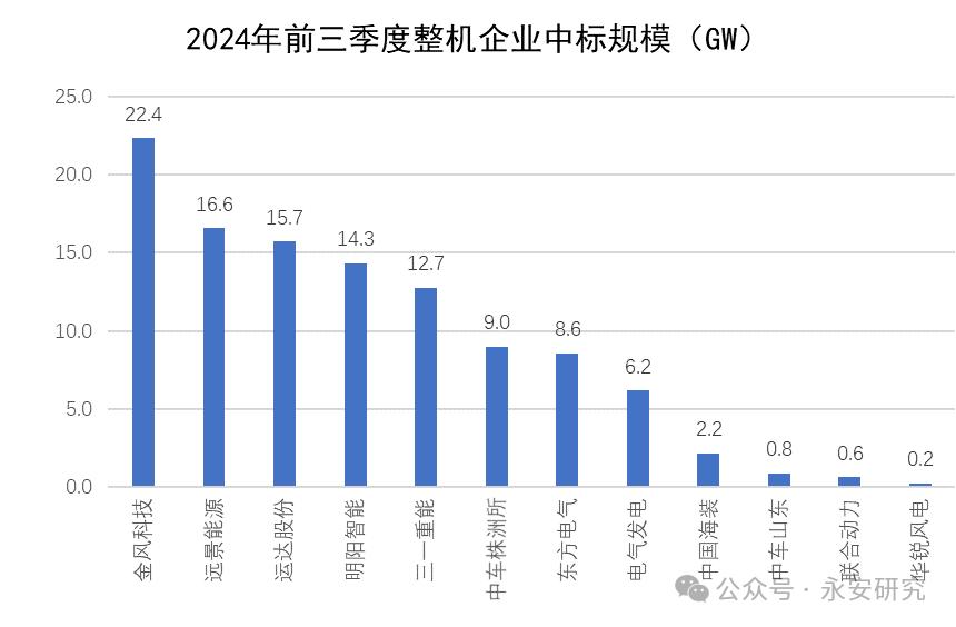 圖8、2024年前三季度整機(jī)企業(yè)中標(biāo)規(guī)模(GW)