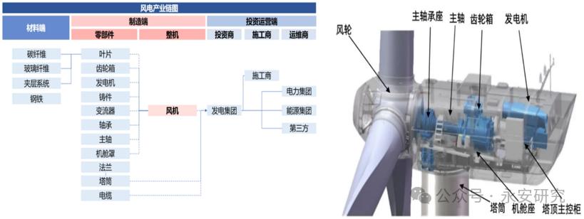 圖6、我國(guó)風(fēng)電產(chǎn)業(yè)鏈與發(fā)電機(jī)組圖示