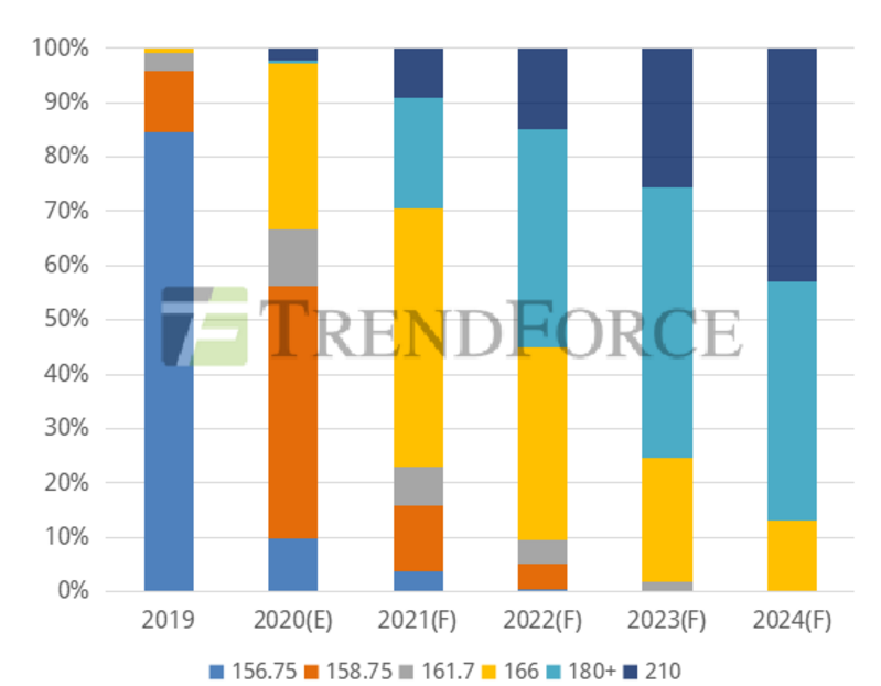 未來三年多尺寸并存,22年M10+G12市占比達(dá)55%