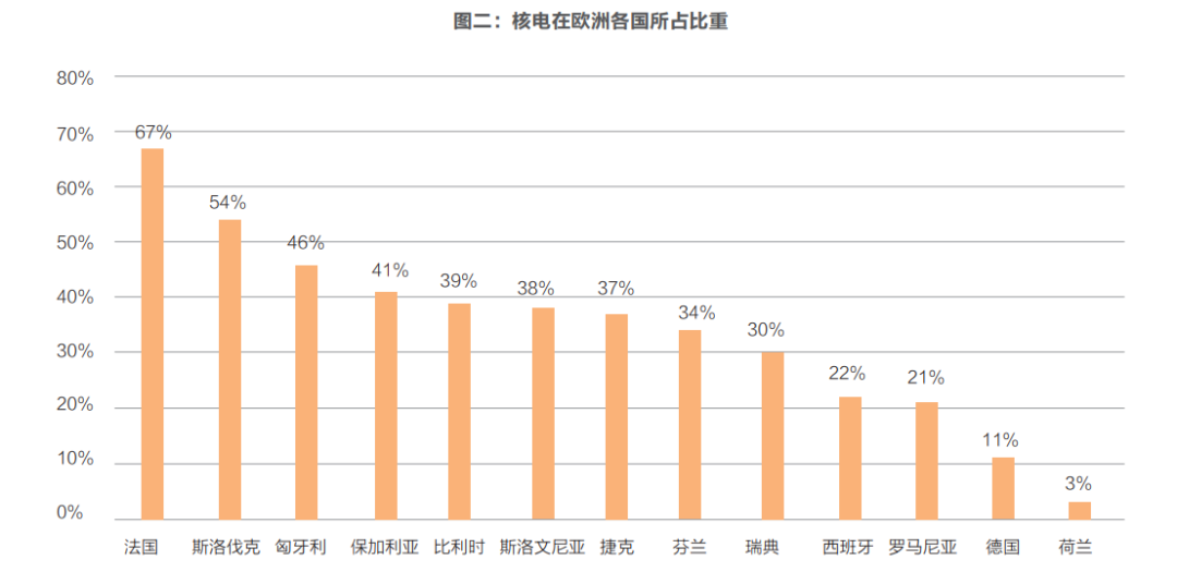 2021年,核能提供了歐盟約27%的電力供應(yīng),占其低碳電力的一半。其中,9個(gè)國(guó)家的核電比例超過30%。也就是意味著,如果歐盟脫離核電,需要為四分之一的電量尋找新的電源??梢钥隙ǖ氖?,這些電力無(wú)法被其他零碳能源迅速取代。