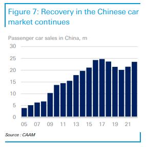 2022年,中國(guó)的汽車銷量超過(guò)了前兩年。與2021年相比,2022年中國(guó)乘用車銷量增長(zhǎng)9.5%。從絕對(duì)值來(lái)看,中國(guó)乘用車銷量從2021年的2150萬(wàn)輛增長(zhǎng)到2350萬(wàn)輛。因此,中國(guó)進(jìn)一步擴(kuò)大了其作為世界最大汽車市場(chǎng)的地位。盡管此前受到了疫情的影響,但2022年和2021年中國(guó)在產(chǎn)量方面仍實(shí)現(xiàn)了增長(zhǎng),這對(duì)生產(chǎn)和需求產(chǎn)生了一定影響,這一點(diǎn)值得注意。