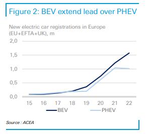 2022年,歐洲純電動(dòng)汽車的市場(chǎng)份額接近14%。在2021年,這一比例僅為10.3%。