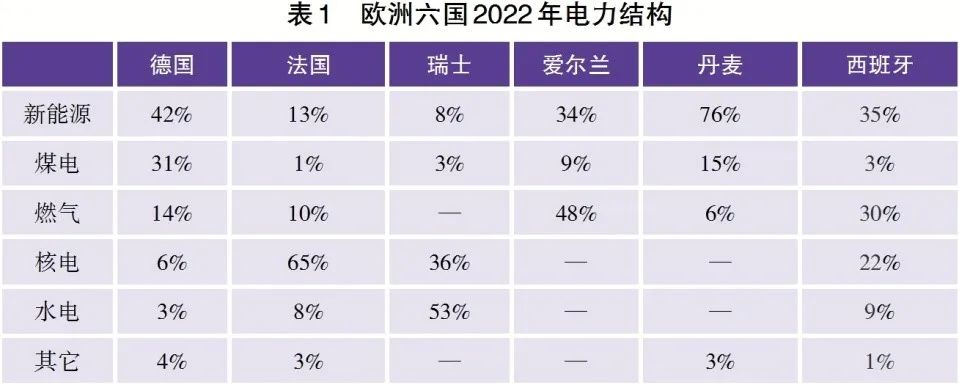 負(fù)電價(jià)主要在風(fēng)電和光伏發(fā)電高峰期出現(xiàn)。盡管發(fā)電總量已經(jīng)過剩,并引起了負(fù)電價(jià)現(xiàn)象,許多電廠仍然在持續(xù)發(fā)電,但背后的原因是多種多樣的。主要涉及三個(gè)關(guān)鍵因素:首先,電廠的應(yīng)變能力有限,難以適應(yīng)可再生能源的波動(dòng)性,還與能源結(jié)構(gòu)和電網(wǎng)結(jié)構(gòu)相關(guān)。其次,為了保持電網(wǎng)穩(wěn)定,調(diào)頻備用電廠不能輕易中止運(yùn)行,反映了電廠應(yīng)變能力方面的短板。最后,可再生能源的補(bǔ)貼政策未能精準(zhǔn)契合市場(chǎng)需求,這既涉及到需求層面,也與政策適應(yīng)性相關(guān)。從某種程度上來說,都或多或少地與發(fā)電機(jī)組和政策機(jī)制的靈活性相關(guān)。負(fù)電價(jià)的表現(xiàn)因各國(guó)情況而異,但均與各國(guó)的能源結(jié)構(gòu)和電網(wǎng)結(jié)構(gòu)及其演變有密切的聯(lián)系。(歐洲各國(guó)電力結(jié)構(gòu)見表1)