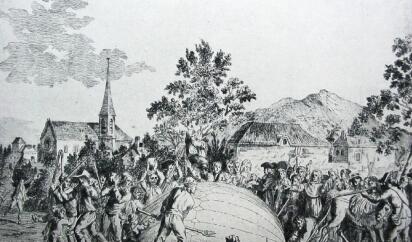 △ 1783年--雅克·查爾斯(Jacques Charles,工程師)用波義耳的方法制造氫氣。他們耗費(fèi)了250千克的硫酸和500千克的鐵,生成的氫氣被巧妙地填充進(jìn)了一個(gè)直徑3.7m的浸膠織物氣球中。一切準(zhǔn)備就緒后,氣球于1783年8月26日晚秘密被送至戰(zhàn)神廣場(chǎng)。乘坐氫氣球“ La Charlière”號(hào)進(jìn)行了首次飛行。雅克·查爾斯(Jacques Charles)和助手羅伯特兄弟實(shí)現(xiàn)了第一次無(wú)人的氫氣球飛行。