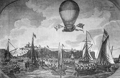 △ 1784年--讓·皮埃爾·布蘭查德(Jean-Pierre Blanchard)嘗試了一個(gè)可拋棄的氫氣球,但它沒(méi)有轉(zhuǎn)向。