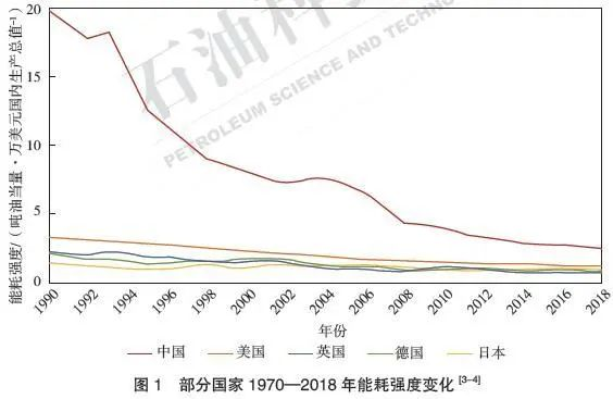 第一,能源效率全面提升。20世紀(jì)70年代,能效開始作為“隱藏的能源”得到普遍關(guān)注并逐漸影響各國能源政策制定。全球能耗強度(單位國內(nèi)生產(chǎn)總值能耗)持續(xù)下降,1970—2010年間,平均每年下降1.3%,2010年以來,平均每年下降2.1%,其中中國能耗強度降速最快、降幅最大(圖1)。國際能源署(IEA)提出“能效不僅是隱性的能源,更是第一能源”,其最早的11個成員國提升能效的投資已帶來顯著的節(jié)能效益。2010年,這11個成員國的節(jié)能量超過任何一種能源的消費量,與石油和天然氣的消費量總和相當(dāng)。