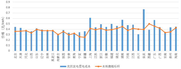 圖2 光伏發(fā)電度電成本與燃煤標(biāo)桿電價對比