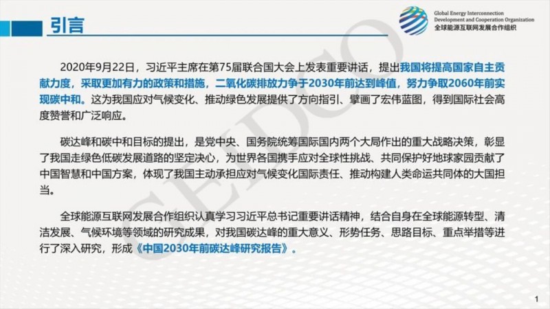 2021年3月18日,全球能源互聯(lián)網(wǎng)發(fā)展合作組織在北京舉行“中國(guó)碳達(dá)峰碳中和成果發(fā)布暨研討會(huì)”,并重磅發(fā)布三份高質(zhì)量研究報(bào)告《中國(guó)2060年前碳中和研究報(bào)告》、《中國(guó)2030年前碳達(dá)峰研究報(bào)告》、《中國(guó)2030年能源電力發(fā)展規(guī)劃研究及2060年展望》。