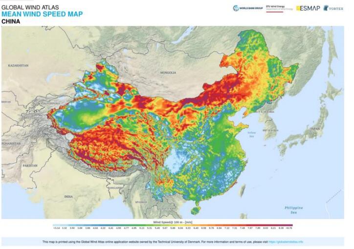 中國平均風(fēng)速見圖