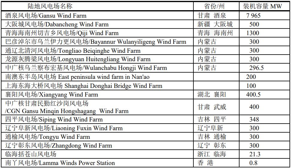 中國大型陸地風(fēng)電場(chǎng)