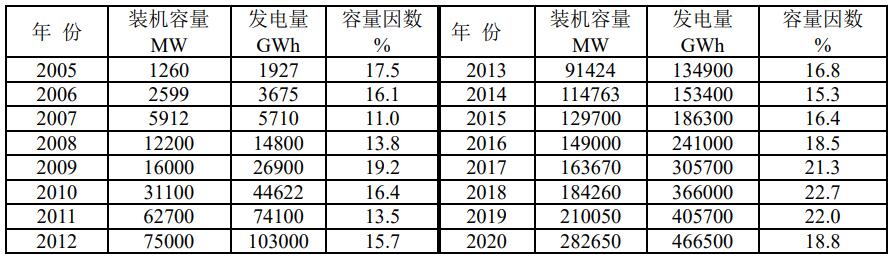 風(fēng)電場(chǎng)裝機(jī)容量(單位:GW)