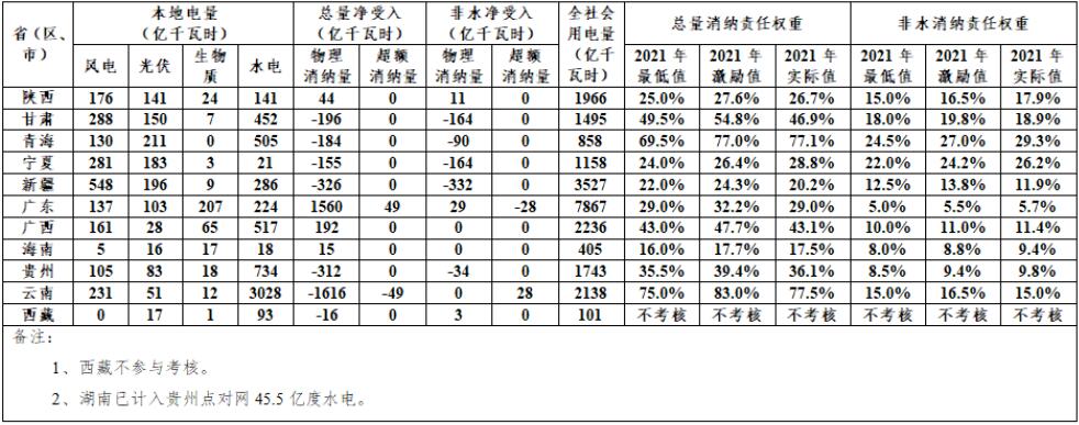 國家能源局關(guān)于2021年可再生能源電力消納責(zé)任權(quán)重完成情況的通報