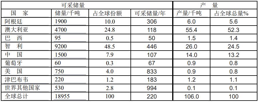 2021年底世界各國鋰的可采儲量和產(chǎn)量