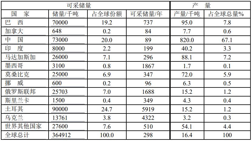 2021年底世界各國天然石墨的可采儲量和產(chǎn)量