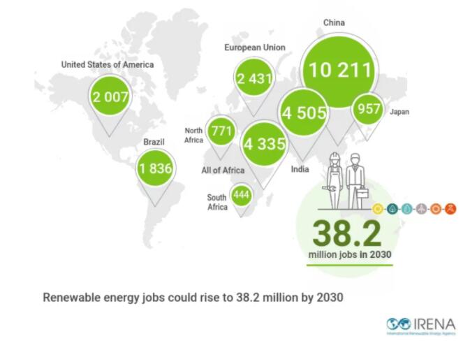 中國是太陽能光伏板的領(lǐng)先制造商和安裝商,海上風(fēng)電工作崗位的數(shù)量正在增長。東南亞國家也正在成為主要的太陽能光伏制造中心和生物燃料生產(chǎn)國。