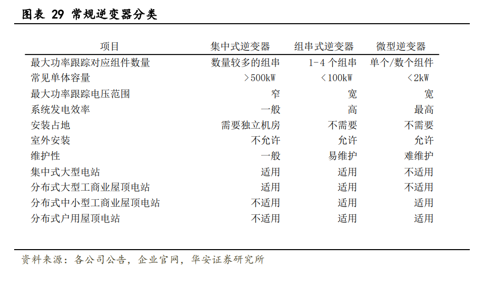 組串 PCS 彌補(bǔ)集中式不足,開啟規(guī)?;瘧?yīng)用。業(yè)內(nèi)目前電池儲(chǔ)能系統(tǒng)主要采取集中 式 PCS,多組電池并聯(lián)將引起電池簇之間的不均衡,久之并聯(lián)電池簇中會(huì)出現(xiàn)一部分電 池實(shí)際出力不足,而另一部分超出倍率使用的現(xiàn)象,造成“木桶”效應(yīng);而組串式 PCS 可 以實(shí)現(xiàn)簇級(jí)管理,提升系統(tǒng)壽命,提高全壽命周期放電容量,規(guī)?;瘧?yīng)用趨勢(shì)已見(jiàn)雛形。 當(dāng)前市場(chǎng)以組串式逆變器為主,微型逆變器尚處于發(fā)展階段。綜合考慮逆變器的不同技 術(shù)并結(jié)合其市場(chǎng)策略做出選擇的背景下,當(dāng)前組串式逆變器仍是市場(chǎng)較為主流選擇。目 前,華為、陽(yáng)光電源、固德威、錦浪科技等光伏逆變器的核心供應(yīng)商均在組串式逆變器 有布局。而微型逆變器作為一種新的技術(shù)路線尚處于發(fā)展期,技術(shù)門檻較高,供應(yīng)商較 少。國(guó)外的微型逆變器市場(chǎng)發(fā)展較早,但出貨仍集中于海外龍頭 Enphase。我國(guó)微型逆變 器供應(yīng)商較少,一方面是因?yàn)閲?guó)內(nèi)相關(guān)技術(shù)研發(fā)較晚,另一方面是因?yàn)閲?guó)內(nèi)市場(chǎng)對(duì)于微 型逆變器的需求處于導(dǎo)入階段,尚未進(jìn)入放量階段。