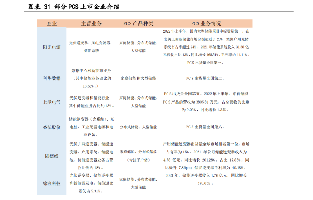 2021 年,中國新增投運(yùn)的電化學(xué)儲(chǔ)能項(xiàng)目中,裝機(jī)規(guī)模排名前十位的儲(chǔ)能逆變器提 供商,依次為:上能電氣、科華數(shù)能、索英電氣、南瑞繼保、陽光電源、盛弘股份、華 自科技、智光儲(chǔ)能、匯川技術(shù)和許繼。 目前從事逆變器的上市企業(yè)主要有上能電氣、固德威和錦浪科技等。從產(chǎn)品結(jié)構(gòu)來 看,上能電氣、固德威以光伏逆變器為主,錦浪科技以組串式逆變器為主。從營收來看, 錦浪科技營收位于行業(yè)較高水平,2021 年為 33.12 億元。從營收增速看,固德威成長(zhǎng)較 快,2021 年?duì)I收增速達(dá) 68.53%,毛利率達(dá)到 31.7%,凈利率達(dá) 10.4%。隨著國內(nèi)逆變器 企業(yè)快速發(fā)展,國產(chǎn)逆變器在海外的競(jìng)爭(zhēng)優(yōu)勢(shì)凸顯。受到國內(nèi)市場(chǎng)政策波動(dòng)影響,尤其 是 2018 年 531 新政后,國內(nèi)逆變器企業(yè)加快拓展海外渠道,加速海外布局。2021 年, 全球逆變器出貨量前十大公司中中國企業(yè)獨(dú)占 6 席,其中華為、陽光電源逆變器出貨量 分列全球第一、第二,分別為 52GW 和近 48GW,第三名為海外公司,其出貨量為 15GW 左 右,與華為、陽光電源存在較大差距。