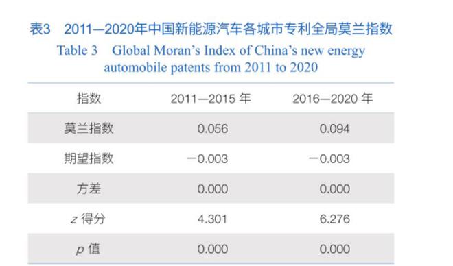 因此,由上述分析可知,新能源汽車企業(yè)是當前中國進行新能源汽車創(chuàng)新活動的主體。但一方面中國新能源汽車產(chǎn)業(yè)發(fā)展仍處于初期,并未形成相對健全的產(chǎn)業(yè)體系;另一方面則是新能源汽車的研發(fā)有較高的技術門檻,企業(yè)間的合作難以開展。中國新能源汽車產(chǎn)業(yè)創(chuàng)新網(wǎng)絡的結網(wǎng)比例及其下降趨勢也表示,大部分新能源汽車的研發(fā)基本由企業(yè)獨立完成。這使得中國新能源汽車在2011—2020年并未產(chǎn)生顯著的溢出效應,僅在長江三角洲城市群地區(qū)有一定的創(chuàng)新活動的集聚現(xiàn)象。