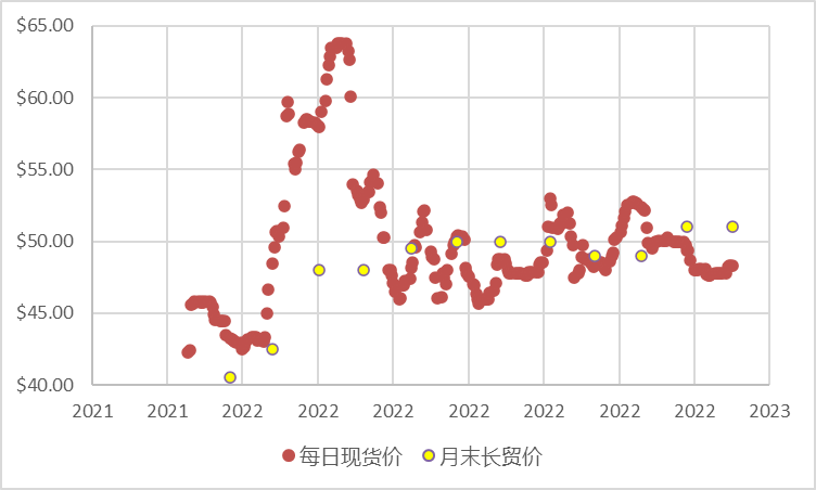 2022年1月-2022年12月現(xiàn)貨價和長貿價