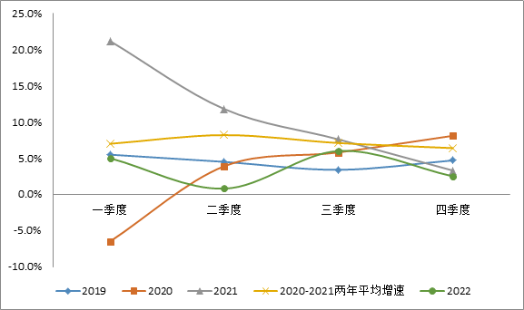 2022年各季度全社會用電量總體波動明顯,一、二、三、四季度,全社會用電量同比分別增長5.0%、0.8%、6.0%、2.5%。
