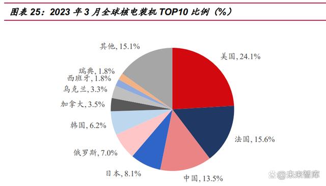 當前全球都處在能源轉型的重要時期,核電作為清潔基荷能源的屬性得到重視。 美國、法國、日本、俄羅斯等曾經(jīng)在歷史上暫緩核電建設甚至退核的國家,均開始重 啟核電建設,并制定實施一系列關于核能發(fā)展的戰(zhàn)略、措施和行動,紛紛提出更加積 極的發(fā)展目標。 目前全球核電裝機 393GW,規(guī)模排名前五的國家分別為美國(95GW)、法國 (61GW)、中國(57GW)、日本(32GW)、俄羅斯(28GW),德國(4GW)作為 曾經(jīng)的核電大國目前正處于全面退核狀態(tài),印度(7GW)隨著國際貿(mào)易環(huán)境改善占比 有望逐漸提高。