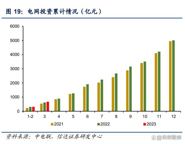 電網(wǎng)投資情況方面:1-3 月電網(wǎng)工程完成投資 668 億元,同比增長 7.5%。2022 年電網(wǎng)工程 審批及建設(shè)受疫情影響,開工及完成不及預期。2023 年開年電網(wǎng)投資開始發(fā)力,有望在今 年保持同比高增速。