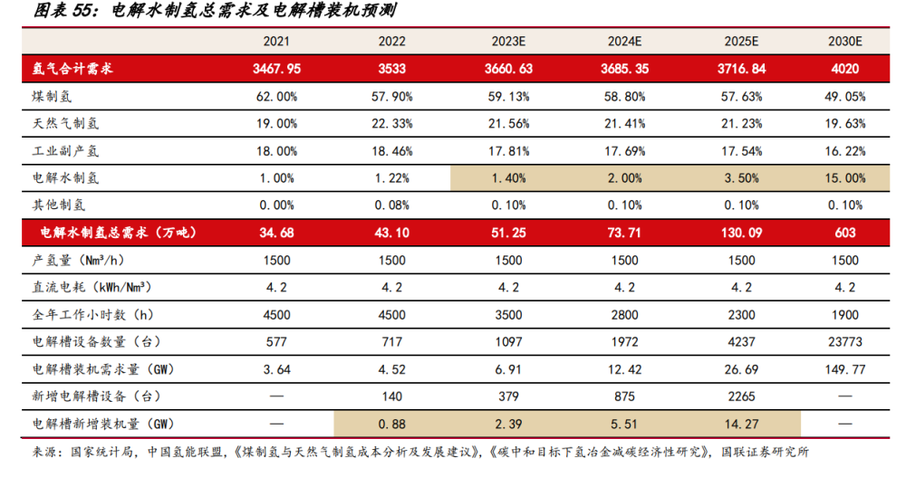電氫需求側(cè)主要看國內(nèi)氫氣需求,電氫供給主要看新能源發(fā)電供給。