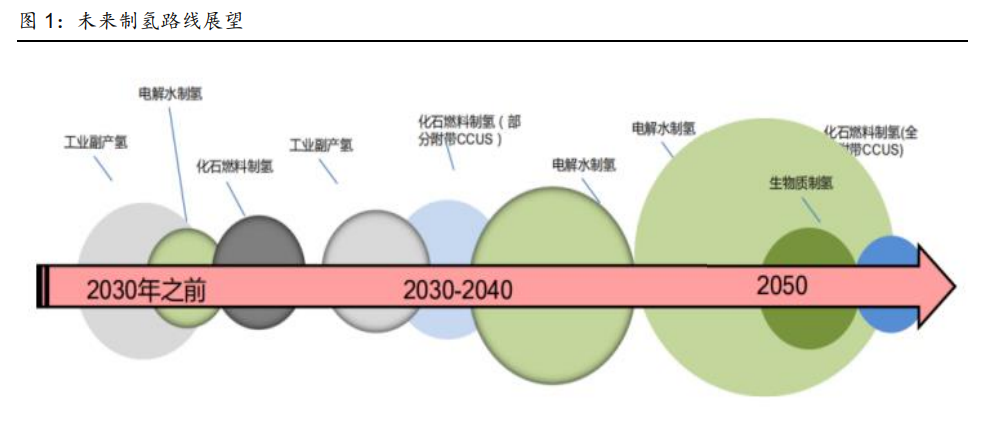 發(fā)展氫能是達到全球“雙碳”目標的重要途徑。氫能是一種來源豐富、綠色低碳、應用廣 泛的二次能源,能幫助可再生能源大規(guī)模消納,實現(xiàn)電網(wǎng)大規(guī)模調峰和跨季節(jié)、跨地域儲 能,加快推進工業(yè)、建筑、交通等領域的低碳化。目前全球氫能發(fā)展如火如荼,中國國家 發(fā)改委、國家能源局聯(lián)合印發(fā)了《氫能產(chǎn)業(yè)發(fā)展中長期規(guī)劃(2021-2035 年)》確定了氫 能是未來國家能源體系的重要組成部分,海外對綠氫的重視程度也越來越高,2020 年歐 盟發(fā)布了《歐盟氫能戰(zhàn)略》,旨在推動氫能在工業(yè)、交通、發(fā)電等全領域應用;同年美國發(fā) 布《氫能計劃發(fā)展規(guī)劃》,指定多項關鍵技術經(jīng)濟指標,期望成為氫能產(chǎn)業(yè)鏈中的市場領導 者。我們認為氫能的開發(fā)和利用有望引發(fā)深刻的能源革命,必須重視氫能行業(yè)的發(fā)展和投 資機會。