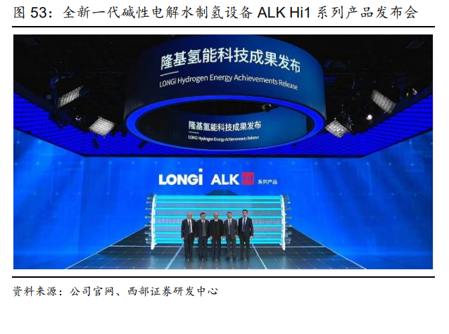實(shí)施“綠電+綠氫”戰(zhàn)略,氫能業(yè)務(wù)蓬勃發(fā)展。光伏發(fā)電已成為全球最具經(jīng)濟(jì)性的清潔能 源,“綠電+綠氫”將推動(dòng)制氫成本 LCOH(單位制氫成本)的下降,同時(shí)有效克服可再生能 源間歇性、儲(chǔ)存性問(wèn)題。隆基氫能提供的“綠電+綠氫”解決方案能全面覆蓋合成甲醇、合 成氨、鋼鐵冶煉、石油煉化等領(lǐng)域。隆基氫能作為領(lǐng)先企業(yè),在 2022 年 5 月成功入圍中 石化首個(gè)萬(wàn)噸級(jí)綠氫示范項(xiàng)目,為其提供分布式光伏和光伏地面電站的解決方案,并提供 綠氫生產(chǎn)裝備以及制氫相關(guān)解決方案。萬(wàn)華化學(xué)與隆基綠能于 2023 年達(dá)成戰(zhàn)略合作,實(shí) 現(xiàn)產(chǎn)業(yè)優(yōu)勢(shì)互補(bǔ),助力“雙碳”目標(biāo)實(shí)現(xiàn)。據(jù)證券之星披露,隆基綠能擬與可再生和清潔 能源開(kāi)發(fā)商 Invenergy 合作,在美國(guó)俄亥俄州建設(shè)一處 5GW 光伏組件工廠。