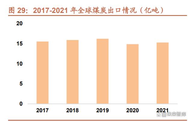 地緣政治局勢變化影響能源市場,全球動力煤價格高企抬升中國動力煤進(jìn)口成本。受疫情影響,2020 年以來全球煤 炭出口數(shù)量持續(xù)下降,2020 年全球煤炭出口總量為 14.86 億噸,較 2019 年下降 8.3%,2021 年回升至 15.27 億噸, 但仍低于 2019 年水平。而地緣政治局勢的惡化則進(jìn)一步影響了煤炭市場,2022 年動力煤供應(yīng)進(jìn)一步惡化。2022 年 1 月,印尼政府為緩解國內(nèi)電廠缺煤形勢宣布 1 月內(nèi)禁止出口煤炭,引發(fā)國際煤炭市場震蕩,海運煤市場供給大幅減 少,煤價開啟上行之路。2022 年 2 月,俄烏沖突爆發(fā),美國與歐盟對俄羅斯實行能源禁運,俄羅斯 3 月以來煤炭、 石油、天然氣出口量均大幅下降,煤炭出口的下降直接沖擊了全球動力煤市場,而天然氣出口的下降使得歐洲出現(xiàn)較 大程度的能源短缺,歐洲多國被迫重拾其他替代能源,煤電也包括在內(nèi),根據(jù)國際能源署的統(tǒng)計,2022 年歐洲燃煤 發(fā)電量同比增長 6%,歐洲能源結(jié)構(gòu)的變化加劇了全球煤炭供給的短缺。2022 年中國的動力煤進(jìn)口成本飆升。
