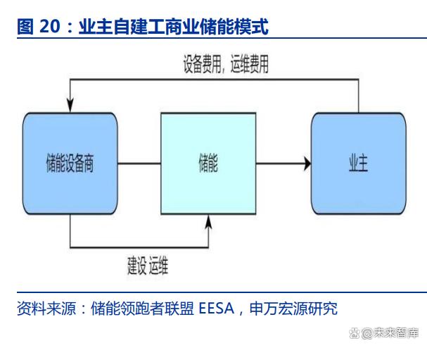 工商業(yè)儲(chǔ)能運(yùn)營(yíng)模式主要分為自建和合同能源管理模式。1)業(yè)主自建:工商業(yè)用戶 自行安裝儲(chǔ)能。用戶自行承擔(dān)初始投資成本及每年設(shè)備維護(hù)成本;2)合同能源管理(市 面較常見):能源服務(wù)企業(yè)協(xié)助用戶安裝儲(chǔ)能,能源企業(yè)投資建設(shè)儲(chǔ)能資產(chǎn)并負(fù)責(zé)后期運(yùn) 維,能源服務(wù)企業(yè)與用電企業(yè)分享儲(chǔ)能收益,目前一般按照 90%:10%或 85%:15%等比例。 此模式對(duì)業(yè)主方而言僅需提供場(chǎng)地,按服務(wù)效果付費(fèi),但對(duì)投資方而言存在資金壓力、收 益波動(dòng)和安全運(yùn)行的風(fēng)險(xiǎn),具備一定資金及產(chǎn)品服務(wù)壁壘,因此能源服務(wù)方一般以對(duì)儲(chǔ)能 建設(shè)和運(yùn)營(yíng)經(jīng)驗(yàn)較多的綜合能源公司、能源集團(tuán)、儲(chǔ)能設(shè)備商為主。