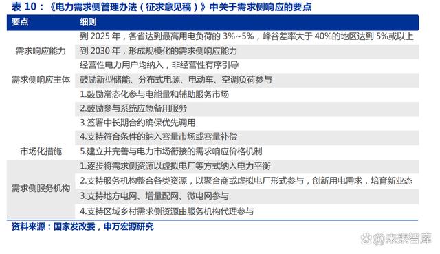 此外,本次政策還提出要鼓勵(lì)需求側(cè)響應(yīng)主體常態(tài)化參與各類電能量、輔助服務(wù)市場(chǎng)、 應(yīng)急備用服務(wù)、容量市場(chǎng)或容量補(bǔ)償?shù)仁袌?chǎng),豐富收益來源,并建立完善與電力市場(chǎng)銜接 機(jī)制。