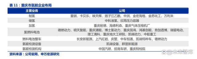 憑借優(yōu)越的地理位置,重慶市將協(xié)助四川打造氫能走廊。重慶市地理位置優(yōu)越,位于中國中部,連接?xùn)|西,副產(chǎn)氫資源豐富,制氫成本低,吸引中科液氫、德燃動(dòng)力、中船重工等眾多企業(yè)在重慶市發(fā)展氫能。其中,重慶當(dāng)?shù)仄髽I(yè)凱瑞動(dòng)力打破了國外技術(shù)壟斷,自主研發(fā)出氫氣循環(huán)泵、氫氣壓力調(diào)節(jié)器,這兩款產(chǎn)品已運(yùn)用于北汽福田、億華通、德燃、明天氫能等諸多廠商。在此基礎(chǔ)上,還將逐步形成儲(chǔ)氫、回氫、供氫等“6+1”產(chǎn)品布局。并且,重慶兩江新區(qū)已引進(jìn)和培育了明天氫能、德燃動(dòng)力、江蘇清能等一批燃料電池產(chǎn)業(yè)的核心企業(yè),以長安汽車和上汽紅巖為代表的車企,正加快布局氫燃料電池汽車產(chǎn)業(yè)新賽道,積極推動(dòng)氫能產(chǎn)品的商業(yè)化進(jìn)程。