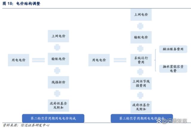 2)輸配電價按“準(zhǔn)許成本+合理收益”原則核定:自 2023 年 6 月 1 日起,工商業(yè)用戶用電價格由上網(wǎng)電價、上網(wǎng)環(huán)節(jié)線損費用、輸配電價、系統(tǒng)運行費用、政府性基金及附加等組成,新增上網(wǎng)環(huán)節(jié)線損費用、系統(tǒng)運行費用。其中,系統(tǒng)運行費用包括輔助服務(wù)費用、抽水蓄能容量電費等。此次電價結(jié)構(gòu)調(diào)整突出了中間環(huán)節(jié)電價,清晰反映電力系統(tǒng)調(diào)節(jié)資源費用,引導(dǎo)用戶為調(diào)節(jié)資源付費,利于工商業(yè)儲能等市場主體參與電力市場輔助服務(wù)。