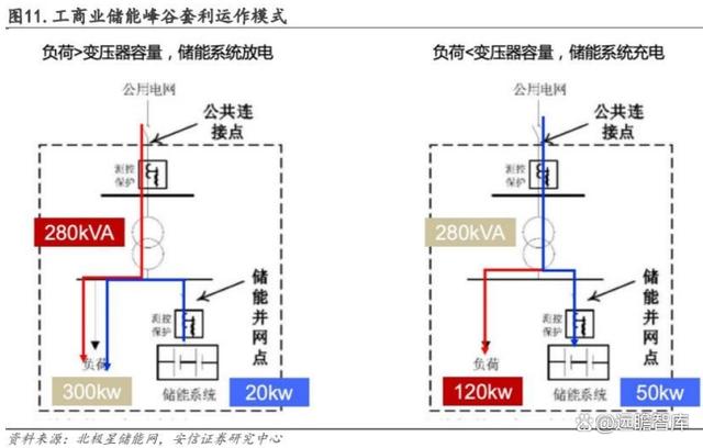 安裝儲能可以通過峰谷價差套利來節(jié)約電量電費。儲能系統(tǒng)在用電低谷時利用低電價充電,在負荷高峰時,由儲能電池向負荷供電,實現(xiàn)峰值負荷的轉移,從峰谷電價中獲取收益。