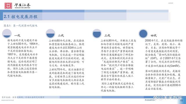 2022年1-12月,全國(guó)運(yùn)行核電機(jī)組累計(jì)發(fā)電量為4177.86億千瓦時(shí),占全國(guó)累計(jì)發(fā)電量的4.98%。與燃煤發(fā)電 相比,2022年核能發(fā)電相當(dāng)于減少燃燒標(biāo)準(zhǔn)煤11812.47萬(wàn)噸,減少排放二氧化碳30948.67萬(wàn)噸、二氧化硫 100.41萬(wàn)噸、氮氧化物87.41萬(wàn)噸。 世界核電歷經(jīng)四次迭代。