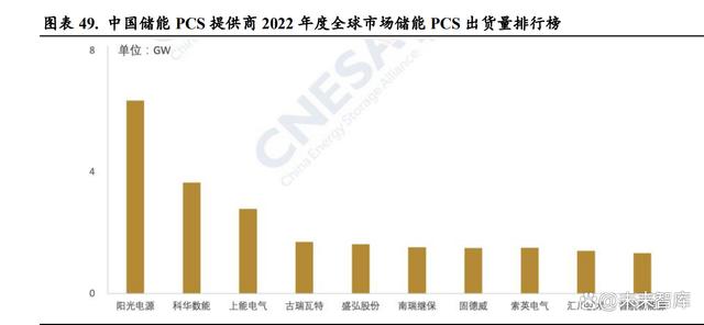 當前儲能 PCS 生產(chǎn)廠商眾多,與光伏逆變器廠商高度重合。儲能變流器與光伏逆變器的最主要 作用都是實現(xiàn)交直流的轉(zhuǎn)換,所以兩種產(chǎn)品的主要零部件類似,且在應(yīng)用端也開始呈現(xiàn)高度的協(xié) 同效應(yīng)。在光伏 PCS 已經(jīng)取得非常大的市場規(guī)模的前提下,未來儲能 PCS 的競爭格局與光伏逆 變器趨同,延續(xù)光伏 PCS 格局。當前儲能 PCS 行業(yè)賽道參與者眾多,來自光伏逆變器、不間斷 電源(UPS)、充電樁(EV charger)、電網(wǎng)側(cè)-輸配電設(shè)備(PTD、MVD、APF、SVG)等多領(lǐng) 域廠商。據(jù) CNESA 數(shù)據(jù),2022 年度全球市場中儲能 PCS 出貨量排名前十位的中國儲能 PCS 提 供商,依次為陽光電源、科華數(shù)能、上能電氣、古瑞瓦特、盛弘股份、南瑞繼保、固德威、索英 電氣、匯川技術(shù)和首航新能源。