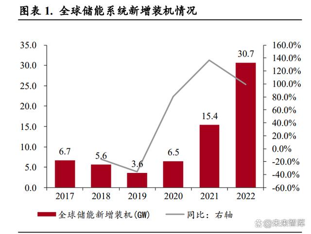 全球儲能裝機快速增長,以鋰離子電池為代表的新型儲能貢獻主要增速