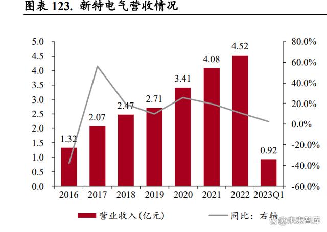 公司營收快速增長,變壓器是營收主力。公司 2016 年的營收為 1.32 億元,2022 年營收已達 4.52 億 元,復(fù)合增長達 22.72%,呈現(xiàn)高速增長的態(tài)勢。分產(chǎn)品來看,公司變壓器是公司營收的絕對主力, 長期營收占比在 90%以上。